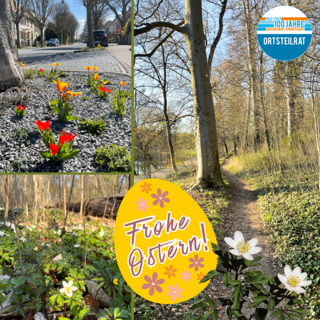 Der Ortsteilrat wünscht allen Einwohnerinnen und Einwohnern unseres schönen Ortsteiles frohe und erholsame Ostertage! – Haben Sie sich schon über die blühenden Beete entlang der Bodelschwinghstraße gefreut? Hier wurde vor knapp zwei Jahren i.R. des Projektes Weimar brummt die monotone, in die Jahre gekommene straßenbegleitende Pflanzung durch eine abwechslungsreiche Staudenmischpflanzung ersetzt, die übers Jahr immer andere Blüten hervorbringt, wo Insekten Unterschlupf und Nahrung finden. – Schön ist auch ein Spaziergang entlang des „Schleichpfades“ parallel zum Corona-Schröter-Weg unterhalb der Villa Haar, hier ist gerade die Pracht der Buschwindröschen zu bewundern. Hätten Sie gewusst, dass hier am Ilmpark die Ortsteilgrenze verläuft?